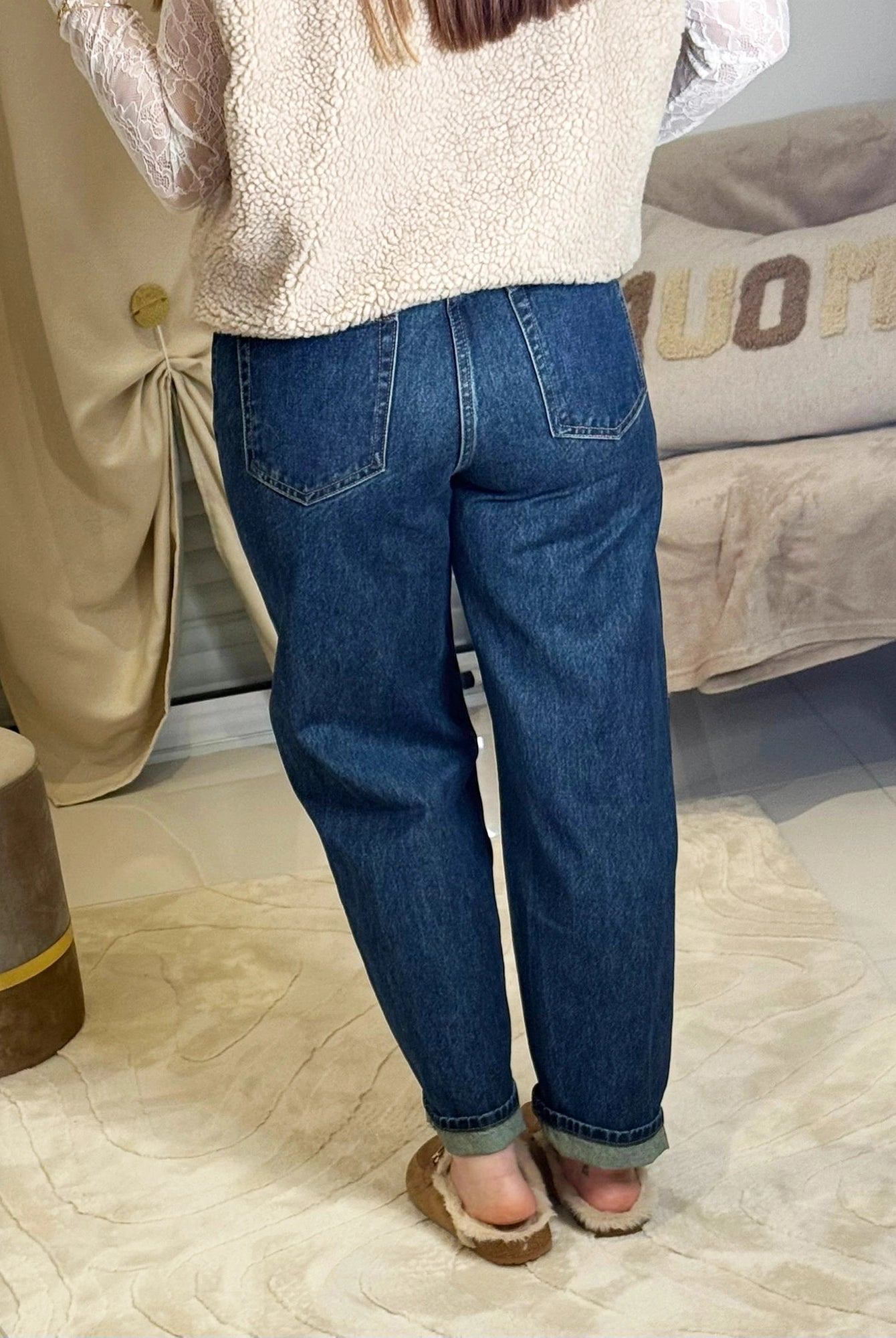 Sa coupe mom fit authentique et sa taille haute flatteuse offrent une silhouette élégamment décontractée, tandis que son denim 100% coton premium garantit durabilité et confort absolu pour toutes vos journées.