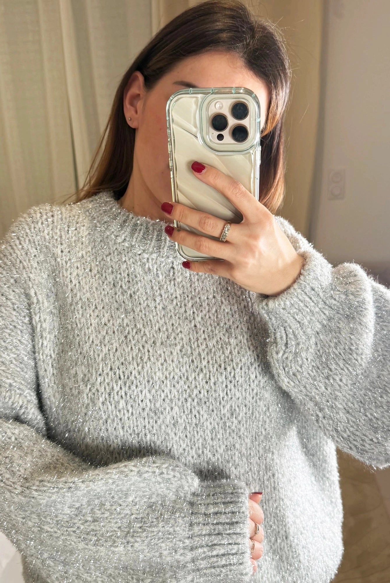 Pull Stella, la douceur ultime pour un style cocooning moderne. Ce pull oversize en grosse maille gris clair devient instantanément votre pièce réconfort préférée de la saison.